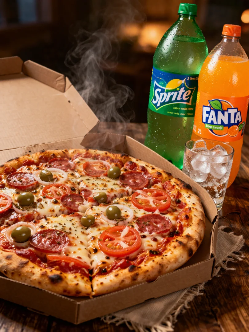 2 pizzas salgada 01 Coca-Cola 2,5 lts